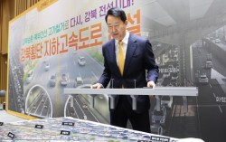 오세훈 서울시장이 18일 서울시청에서 열린 강북횡단 지하도시고속도로 건설 기자간담회에서 건설 계획에 대해 설명하며 모형 고가를 들어보이고 있다. 연합뉴스 서울 강북을 횡단하는 내부순환로와 북부간선도로를 철거하고 지하에 도시고속도로를 만드는 사업이 추진된다…