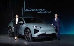 크리스티아네 초른 포르쉐 해외신흥시장 총괄(왼쪽)과 마티아스 부세 포르쉐코리아 대표가 19일 서울 광진구에서 열린 신년 기자간담회에서 고성능 스포츠유틸리티차(SUV) 전동화 모델인 ‘카이엔 일렉트릭’을 소개하고 있다. 사진 포르쉐코리아 포르쉐가 고성능 스…
