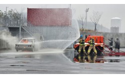 지난 18일 오후 2시30분 충남 청양군 충청소방학교에서 아파트 화재를 가상한 진화 훈련이 펼쳐졌다. 아파트 지하주차장에서 화재가 발생, 차량이 화염에 휩싸였다. 수백도가 넘는 고온과 한 치 앞도 내다볼 수 없는 연기로 진화대원 투입이 어려운 상황이다. 이때 물대포를 …