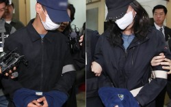 장모를 폭행해 숨지게 한 뒤 캐리어에 시신을 담아 유기한 혐의로 긴급 체포된 20대 사위(왼쪽)와 딸이 2일 대구지법에 도착해 영장실질심사를 받으려 이동하고 있다. 연합뉴스 장모를 폭행 살해한 뒤 시신을 캐리어에 담아 대구 신천에 유기한 혐의를 받는 20…