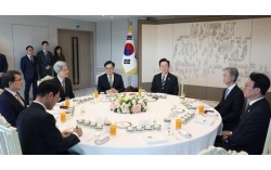 12·3 비상계엄 사태 1주년인 3일 이재명 대통령은 용산 대통령실로 5부 요인을 초청해 오찬을 갖고 “우리 모두 헌정 질서를 지키는 책임 있는 기관장이라는 점에서 (오늘 만남의) 의미가 각별한 것 같다”고 말했다. 이 대통령부터 시계 방향으로 조희대 대법원장, 김민석…