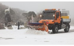 제주도 산지에 대설주의보가 내려진 3일 오전 한라산 1100고지에서 제설차량이 도로 위 눈을 치우고 있다. 연합뉴스 4일 한파가 이어지는 가운데 오후부터 서울에 최대 5㎝에 이르는 첫눈이 내릴 것으로 예상된다. 특히, 퇴근시간 대에 강한 눈이 집중될 것으…