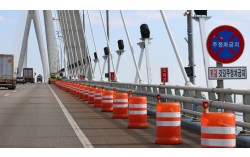 지난달 18일 인천시 중구 인천대교 갓길에 주정차 방지용 드럼통(PE드럼)이 재설치 돼 있다. 인천대교 측은 주정차 방지용 시설물이 철거된 인천대교에서 투신 사고가 잇따르자 두 달 만에 주탑 부근 양방향 3㎞(각 1.5㎞) 구간 갓길에 플라스틱 드럼통 600여개를 …