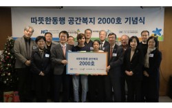 따뜻한동행 공간복지 2,000호 기념식: 따뜻한동행 김종훈 이사장, 송필호 신임 이사장, 김용직 이사, 양옥경 이사, 정연성 감사, 이광재 상임대표를 비롯한 관계자들이 수혜기관 이용자들과 함께 기념촬영을 하고 있다. 사회복지법인 따뜻한동행은 송필호 이사를…
