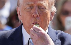 도널드 트럼프 미국 대통령이 8일(현지시간) 이란과 호르무즈해협의 통행료를 공동 징수하는 방안을 검토하고 있다고 밝혔다. 지난 6일 도널드 트럼프 미국 대통령이 백악관에서 진행한 부활절 행사에서 호루라기를 불고 있다. AP=연합뉴스 이날 트럼프 대통령과 통화한 A…