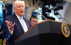 도널드 트럼프 미국 대통령이 6일(현지시간) 워싱턴DC 백악관 브리핑룸에서 피트 헤그세스 국방장관이 배석한 가운데 기자회견을 하고 있다. 로이터=연합뉴스 도널드 트럼프 미국 대통령이 이란과의 종전 협상이 파키스탄에서 “곧(very soon)” 열릴 것으로 기대한다…