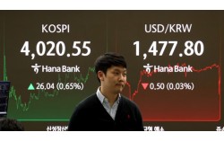 코스피가 기관의 매수세에 힘입어 상승 마감한 19일 서울 중구 하나은행 딜링룸 현황판에 전일 대비 26.04포인트(0.65%)상승한 4,020.55를 나타내고 있다. 뉴스1 미국 달러당 원화값이 20일 1480원대까지 떨어지며 금융 시장의 불안감이 지속되…
