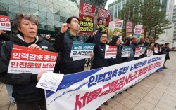 서울교통공사노동조합 관계자들이 25일 서울시청 앞에서 쟁의행위 찬반투표 결과 및 총파업 예고 기자회견을 열고 있다. 연합뉴스 서울지하철 1∼8호선을 운영하는 서울교통공사 노동조합이 내달 12일 총파업을 예고했다. 서울교통공사 제1노조인 민주노총 산하 서울교통…