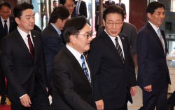 이재명 대통령이 2일 추가경정예산안 시정연설을 위해 국회에 도착, 우원식 국회의장과 함께 환담장으로 향하고 있다. 사진 국회사진기자단 이재명 대통령은 2일 여당이 추진 중인 개헌과 관련해 "5·18 정신의 헌법 전문 반영 또는 이번 계엄 과정에서 생긴 문…
