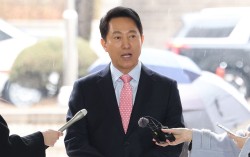 정치자금법 위반 혐의로 기소된 오세훈 서울시장이 18일 오전 서울시 서초구 서울중앙지방법원에서 열린 정치자금법위반 2차 공판에 출석하며 취재진 질의에 답변하고 있다. 뉴스1 국민의힘 서울시장 예비후보 등록 문제를 놓고 장동혁 대표와 벼랑 끝에서 대치하던 오세훈 서…