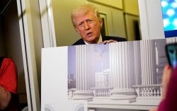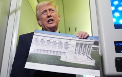 4억 달러(약 6000억원)의 기부금을 조달해 대규모 백악관 연회장을 짓겟다는 도널드 트럼프 미국 대통령의 계획이 법원에 의해 제동이 걸렸다. 미 연방지방법원이 연회장 공사를 즉각 중단하라고 명령하면서다. 백악관 연회장 조감도 들고 있는 트럼프. 로이터=연합뉴스 …