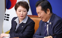 정청래 더불어민주당 대표와 이언주 최고위원이 4일 서울 여의도 국회에서 열린 최고위원회의에서 이성윤 최고위원의 발언을 경청하고 있다. 뉴스1 정청래 더불어민주당 대표가 조국혁신당과 합당을 두고 당내 반발이 커지자 선수(選數)별 연쇄 회동을 통해 ‘도장깨기…