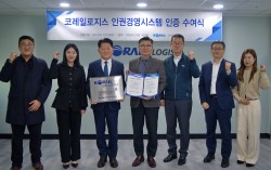 중소벤처기업인증원 엄진엽 원장(왼쪽 세 번째)과 코레일로지스 한상덕 대표이사(왼쪽 네 번째)가 인권경영시스템(HRMS) 인증서 및 현판 수여식 후 양 기관 관계자들과 함께 기념촬영을 하고 있다. 중소벤처기업인증원(원장 엄진엽, KOSRE)은 코레일로지스(…