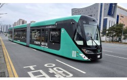 국내 첫 도입을 앞둔 ‘3칸 굴절차량’이 1일 대전 서구 갑천생태호수공원 인근 도로에서 시험운행을 하고 있다. 이 차량은 최대 정원 230명 규모로 1회 충전 시 최대 50㎞ 주행이 가능하다. 운전석은 양쪽에 마련돼 반대 방향 운행 시 운전자가 차량 양 끝을 오가는 방…
