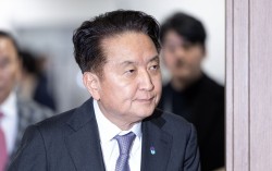 의장을 맡은 전영현 삼성전자 대표이사 부회장 겸 DS부문장이 18일 오전 경기 수원시 수원컨벤션센터에서 열린 제57기 정기 주주총회에서 인사말을 하고 있다. "주가를 올려주셔서 감사합니다. 내년에는 주가가 더 올라서 더 좋은 차 몰고 (주총에) 올 수 있도록 부탁…