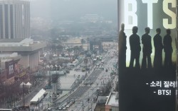 방탄소년단(BTS) 완전체 컴백 공연을 사흘 앞둔 18일 서울 광화문광장 인근 빌딩 전광판에 컴백 공연을 알리는 광고가 표출되고 있다. 정부는 이날 방탄소년단(BTS) 광화문 공연을 앞두고 19일 0시부터 21일 밤 12시까지 종로구와 중구 등 도심 일대 테러경보를 …
