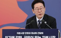 이재명 대통령이 18일 청와대에서 열린 자본시장 안정과 정상화 간담회에서 발언을 하고 있다. 뉴스1 이재명 대통령은 18일 중동 전쟁 여파로 변동성이 커진 증시 상황과 관련해 “이런 위기 때야말로 필요한 개혁과제를 잘해야 한다”며 “그게 새로운 출발을 준비하는 길…