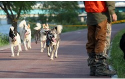 울산 태화강변에서 멧돼지가 출몰했다는 신고가 접수된 가운데 포수와 사냥개들이 멧돼지를 포획하기 위해 수색을 하고 있다. 사진 뉴스1 부산 금정산 인근 민가에서 대형 멧돼지가 어르신을 쳐 중상을 입힌 사고를 계기로 멧돼지 포획 걸림돌이 되는 ‘총기포획 유보…