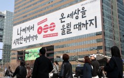 방탄소년단(BTS) 컴백 공연을 앞둔 17일 서울 종로구 교보생명빌딩 광화문글판에 걸린 BTS 컴백 문구가 걸려 있다. 뉴스1 방탄소년단(BTS) 공연을 앞두고 온라인 중고거래 플랫폼에서 공식 응원봉 수요가 급증하며 품귀 현상까지 벌어지고 있다. 18일 중고…