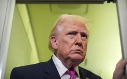도널드 트럼프 미국 대통령이 29일(현지시간) 플로리다주 웨스트팜비치에서 워싱턴으로 가던 중 에어포스원에서 기자들과 대화하고 있다. AFP=연합뉴스 도널드 트럼프 미국 대통령이 호르무즈 해협이 사실상 폐쇄된 상태로 남아있더라도 이란에 대한 군사작전을 끝낼 용의가 …