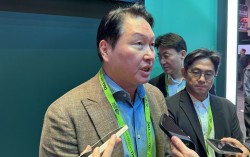 최태원 SK그룹 회장이 16일(현지시간) 미국 새너제이 컨벤션센터에서 열린 엔비디아 연례 개발자회의 'GTC 2026' 전시장에서 기자들의 질문에 답하고 있다. 공동취재단 최태원 SK그룹 회장이 16일(현지시간) 미국 새너제이에서 열린 엔비디아의 연례 개…