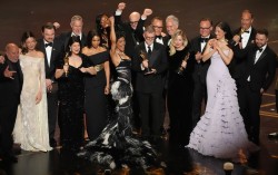 15일(현지시간) 열린 제98회 아카데미 시상식에서 ‘원 배틀 애프터 어나더’가 작품상·감독상 등 6관왕을 차지했다. 생애 첫 오스카 트로피를 거머쥔 폴 토마스 앤더슨 감독(가운데)이 배우, 스태프들과 기쁨을 함께 하고 있다. [AP=연합뉴스] ‘아카데미…