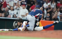 WBC 4강전에서 도미니카공화국 페르난도 타티스 주니어(아래)를 아웃시키고 있는 미국 3루수 거너 헨더슨. [AP=연합뉴스] 2026 월드베이스볼클래식(WBC)의 ‘사실상 결승전’으로 불린 미국과 도미니카공화국의 16일(한국시간) 4강 맞대결. 1-2로 …