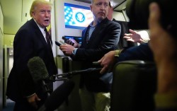 도널드 트럼프 미국 대통령이 15일(현지시간) 메릴랜드주 앤드루스 합동기지로 향하던 중 전용기에서 기자들에게 발언하고 있다. [AP=연합뉴스] “그들에게 남은 건 해협에서 약간의 문제를 일으키는 것뿐.” 도널드 트럼프 미국 대통령은 15일(현지시간)…