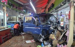 시장으로 돌진한 트럭. 사진 부천소방서 13일 오전 10시 55분쯤 경기 부천시 오정구 원종동 제일시장에서 1톤 트럭이 상가로 돌진했다. 이 사고로 2명이 심정지 상태로 발견됐고, 8명이 크게 다쳐 병원으로 옮겨졌다. 소방당국은 "트럭이 시장…