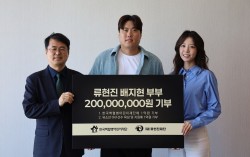 한화이글스 투수 류현진이 프로야구 데뷔 20주년을 맞아 소아암 및 희귀질환 어린이들을 위해 1억원을 기부했다. 한국백혈병어린이재단은 류현진이 지난 8일 인천 오라카이 송도 호텔에서 열린 기부금 전달식에서 1억원을 후원했다고 9일 밝혔다. 행사에는 류현진과 부인 배…