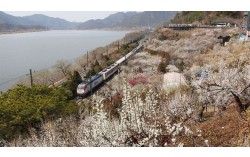 부산 낮 최고기온이 14도의 완연한 봄 날씨를 보인 16일 경남 양산시 원동면 매화마을에 매화꽃이 만개했다. 낙동강 변을 달리는 열차가 매화꽃 향기를 가득 싣고 봄 소식을 전하러 달려가고 있다.