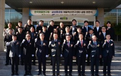 한국재료연구원이 삼성중공업과 함께 협력하고자 설립한 ‘KIMS-SHI 재료혁신연구센터’현판식 행사에 참석한 이들의 기념촬영 모습 한국재료연구원(KIMS, 원장 최철진)이 11월 28일(금) 경남 창원의 한국재료연구원 본원에서 삼성중공업(SHI)과 함께 「…