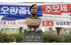 경남 김해시 인제로 51번길 김해삼성초등학교 옆 길에 세워진 고 김오랑 중령 흉상. 연합뉴스 정부가 '12·12 군사반란' 당시 신군부에 맞서 싸우다 전사한 고(故) 김오랑 중령에게 무공훈장을 추서할 예정이다. 30일 군에 따르면, 국방부는 기존에 김 중령…