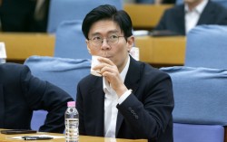 30일 서울 여의도 국회 의원회관에서 열린 '정책 2830' 창립총회 및 기조강연에서 조정훈 국민의힘 의원이 물을 마시고 있다. 2026.3.30 국민의힘 서울시당이 30일 조정훈 의원과 그의 지역구인 마포갑 당협 관계자들 간 금품 수수 의혹에 대해 진상…