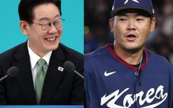 이재명 대통령과 지난 9일 일본 도쿄돔에서 열린 2026 월드베이스볼클래식 조별리그 C조 대한민국과 호주의 경기에서 호주의 3회말 공격을 삼자범퇴로 끝낸 뒤 더그아웃으로 향하고 있는 노경은.뉴스1 이재명 대통령이 16일 월드베이스볼클래식(WBC) 대한민국 야구대표…