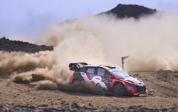 현대자동차는 지난 26일부터 29일(현지시간)까지 사우디아라비아에서 열린 2025 월드랠리챔피언십 열네번째 라운드 '사우디아라비아 랠리'에서 티에리 누빌이 1위를 차지했다고 30일 밝혔다. 사진은 2025 WRC 사우디아라비아 랠리에서 질주하는 현대차 월드랠리팀 'i2…