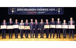 중앙일보와 엑스골프가 주관하는 ‘골퍼의 선택 대한민국 10대 골프장’ 시상식이 30일 열렸다. 선정 작업은 골퍼들이 실제로 라운드한 뒤 직접 평가한 데이터를 반영해 객관성을 높였다. 사진 왼쪽부터 박인준 모나용평 대표, 신성관 페럼 지배인, 정석천 서원힐스 대표, 김성…