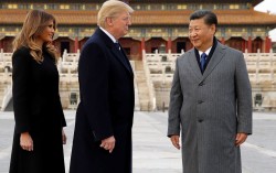 지난 2017년 11월 도널드 트럼프(가운데) 미국 대통령과 멜라니아(왼쪽) 여사가 시진핑(오른쪽) 중국 국가주석과 함께 자금성을 방문했다. 로이터=연합뉴스 14일(현지시간) 도널드 트럼프 미국 대통령이 중국을 꼭 집어 호르무즈 해협 항로 보호를 이유로…