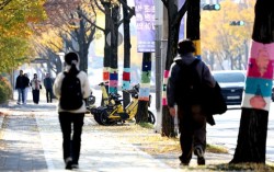 24일 대구 북구 경북대학교 인근 나무에 겨울철 해충 방제를 위한 잠복소가 둘러져 있다. 뉴시스 26일 전국에 비가 내린 뒤에 기온이 하강하면서 본격적인 겨울 날씨에 돌입한다. 기상청은 올겨울 추위가 예년과 비슷하거나 덜할 것으로 전망했다. 기상청에…