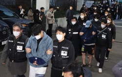 캄보디아 범죄조직의 범행에 가담했다가 국내로 강제 송환 후 압송된 한국인 피의자들이 23일 오후 부산 동래경찰서에 도착해 호송차에서 내리고 있다. 연합뉴스 캄보디아에서 스캠(사기) 등에 가담했다가 강제 송환된 한국인 범죄 조직원 73명 중 72명에 대해 구속영장이…