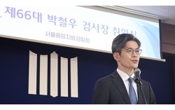박철우 신임 서울중앙지검장이 21일 서울 서초구 서울중앙지방검찰청에서 열린 제66대 서울중앙지방검찰청 검사장 취임식에서 취임사를 하고 있다. 연합뉴스 여권의 ‘대장동 사건 항소 포기’에 반발한 검사장들에 대한 평검사 전보 등 인사 조치 요구에 법무부가 보…