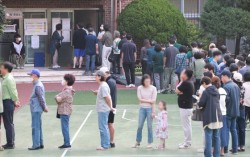 제21대 대통령 선거일인 3일 대구 중구 성내3동 행정복지센터에 마련된 성내3동 제2투표소에서 유권자들이 투표를 하고 있다. 뉴시스 [속보] 선거 관련 112 신고 서울 54건…"투표용지 미리 도장"