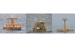 2023년 5월 20일 해군이 서해에서 잇따라 발견한 중국 측 해양 부표. 동경 123도 선을 따라 가장 최근에 세워진 부표 3개의 모습이다. 사진 해군 중국이 해양 및 기상 관측용으로 주장하며 서해 잠정조치수역(PMZ) 안팎에 띄운 부표 13개는 등대 …