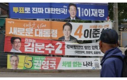 제21대 대통령선거를 하루 앞둔 2일 서울 성북구 한 도로에 더불어민주당 이재명 후보, 국민의힘 김문수 후보, 개혁신당 이준석 후보, 민주노동당 권영국 대선후보 현수막이 걸려 있다. 연합뉴스 6ㆍ3 대선 본 투표만 남겨놓고 22일간의 공식 선거운동이 막을…