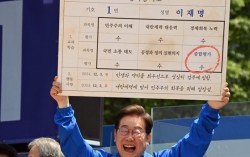 6ㆍ3 대선 레이스 막판 이재명·김문수 후보가 격렬하게 충돌하고 있다. 지지층 결집을 위한 총력전이라는 평가다. 1일 경북 안동시 동부동 웅부공원에서 열린 이재명더불어민주당 대선후보의 유세에서 초등학교 은사로부터 이후보를 평가한 가상의 성적표를 전달받은 후보자가 밝게 …