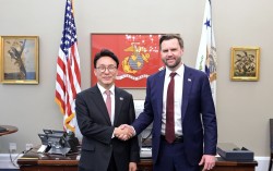 김민석 국무총리는 12일(현지시간) 미국 워싱턴 백악관에서 JD밴스 미국 부통령과 만나 국회가 한·미 무역 합의를 이행하기 위한 대미투자 특별법을 처리한 점을 설명하고 “이는 강력한 투자합의 이행 의지를 보여주는 것”이라고 강조했다고 국무총리실이 밝혔다. 김민석 국무총…