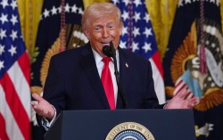 지난 9일 도널드 트럼프 미국 대통령이 자신이 소유한 마이애미 트럼프 내셔널 도럴 골프장에서 기자회견 을 하던 중 눈을 감고 있다. AFP=연합뉴스 기대가 실망. 실망이 분노로 변하고 있다. 도널드 트럼프 미국 대통령을 향한 이란 반정부 시위 세력의 마음…