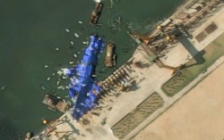 미국 싱크탱크 해군분석센터(CNA) 데커 에벨레스 연구원이 청진조선소 일대를 촬영한 위성사진을 자신의 소셜미디어(SNS)를 통해 공개했다. 사진에는 지난 21일 진수 도중 넘어진 구축함에 풍선 수십개를 매단 것으로 추정되는 모습이 담겼다. 데커 에벨레스 X계정 캡처 …