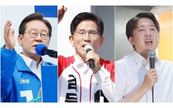 14일 창원에서 지지 호소하는 이재명 후보(왼쪽부터), 진주광미사거리에서 유세하는 김문수 후보, 13일 대구 2.28기념중앙공원에서 집중유세하는 이준석 후보. 연합뉴스 김문수 국민의힘 후보와 이준석 개혁신당 후보의 단일화 여부가 6·3 대선의 막판 변수로…