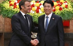원전 세일즈에 나선 에마뉘엘 마크롱 프랑스 대통령(왼쪽)이 26일 하노이 주석궁에서 르엉끄엉 베트남 국가주석과 악수하고 있다. 베트남은 원전 개발을 추진 중이다. [AP=연합뉴스] 에마뉘엘 마크롱 프랑스 대통령이 ‘원전 세일즈’를 위한 동남아시아 순방에 …